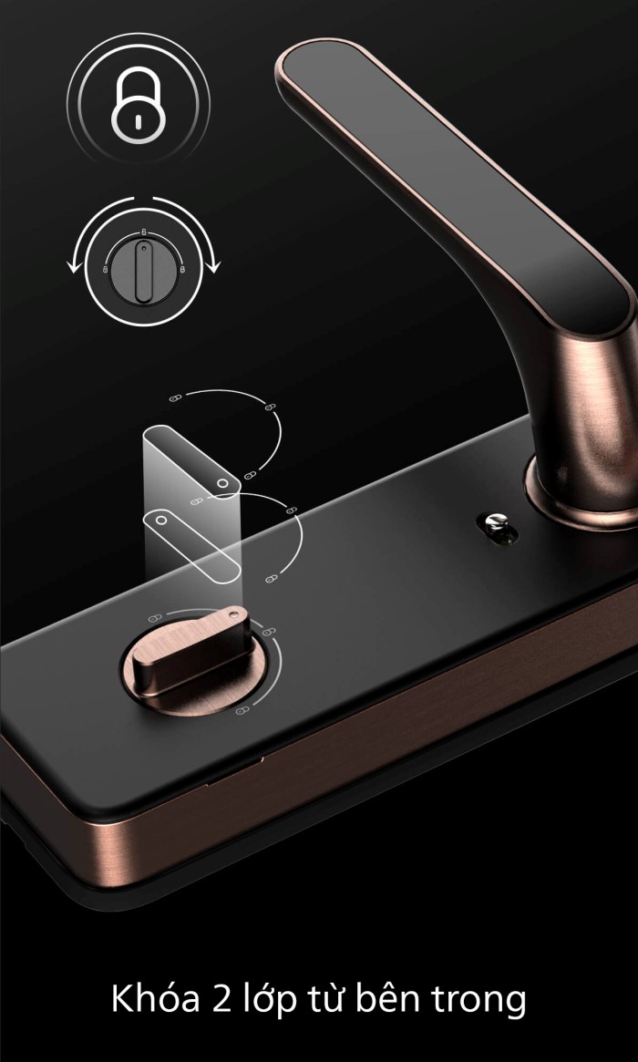 - Bảo mật kép: Khi cần gia chủ có thể cài đặt, chuyển sang chế độ mở khóa bằng kết hợp cùng lúc 2 phương thức: vân tay và mã số hoặc 2 lần vân tay, 2 lần mã số.